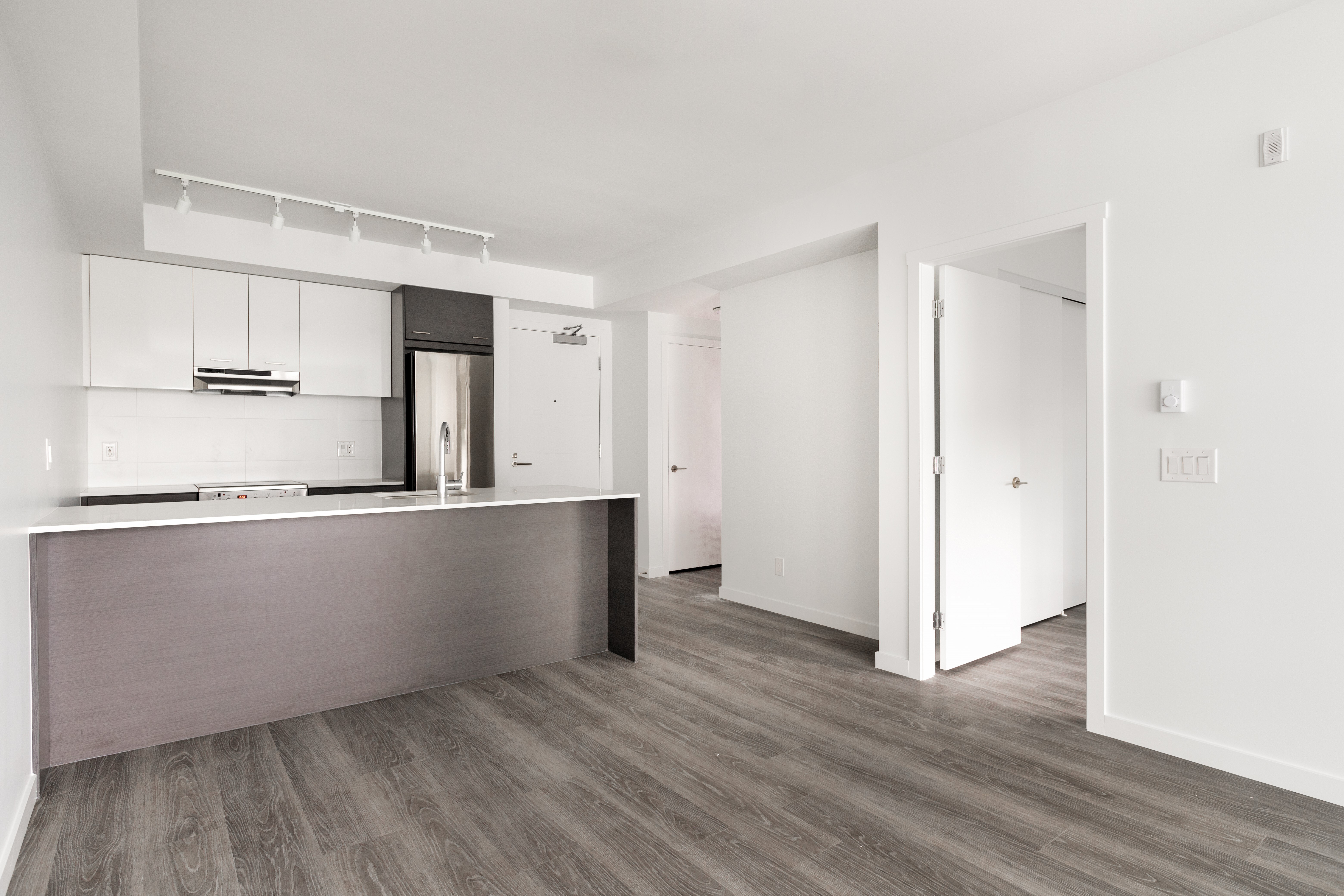 Our C3 plan hits all your must-haves. A stunning kitchen island is finishes with beautiful quartz counters creating a casual breakfast bar. This is paired with a modern, low-energy appliance package including a dishwasher. In-suite washer and dryer make laundry day feel no big deal. With an eastern exposure, you can expect beautiful morning sunrises, and a quiet, uninterrupted view of the suburbs.
